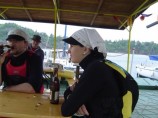 A na závěr jsme vyrazili v 10:10h a skončili v 16:13h v Dolním Žlebu po 38km, Hřensko se nekonalo, jeden byvalý kamarád se nám opozdil a nenavazovalo by spojení zpět do Prahy pro valnou část výpravy. Ale zas ve Žlebu šlo v pohodě zajet k vodě a vlakovou sekci čekala ještě cesta přívozem k vlaku. DO HŘENSKA NáM SCHáZELO OPRAVDU KOUSEK, POUHé 4KM ......